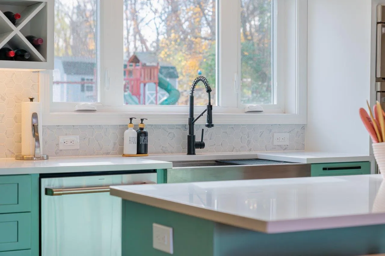 To support their day-to-day life, we redesigned the layout to improve flow and storage while keeping everything accessible. One of the most important features is the oversized window we added overlooking the backyard, giving the parents a clear view of the kids while cooking or entertaining.